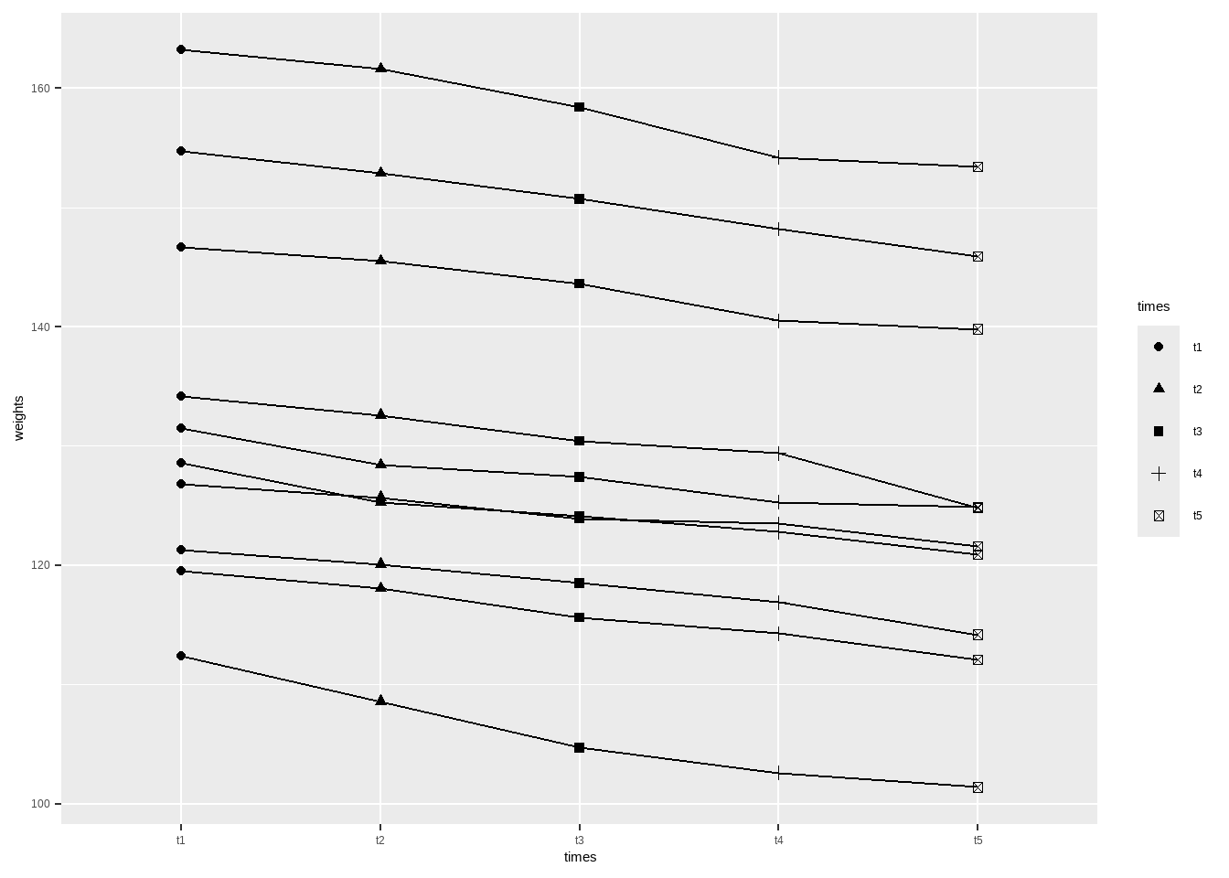 ggplot(data14_7_long, aes(times, weights))+